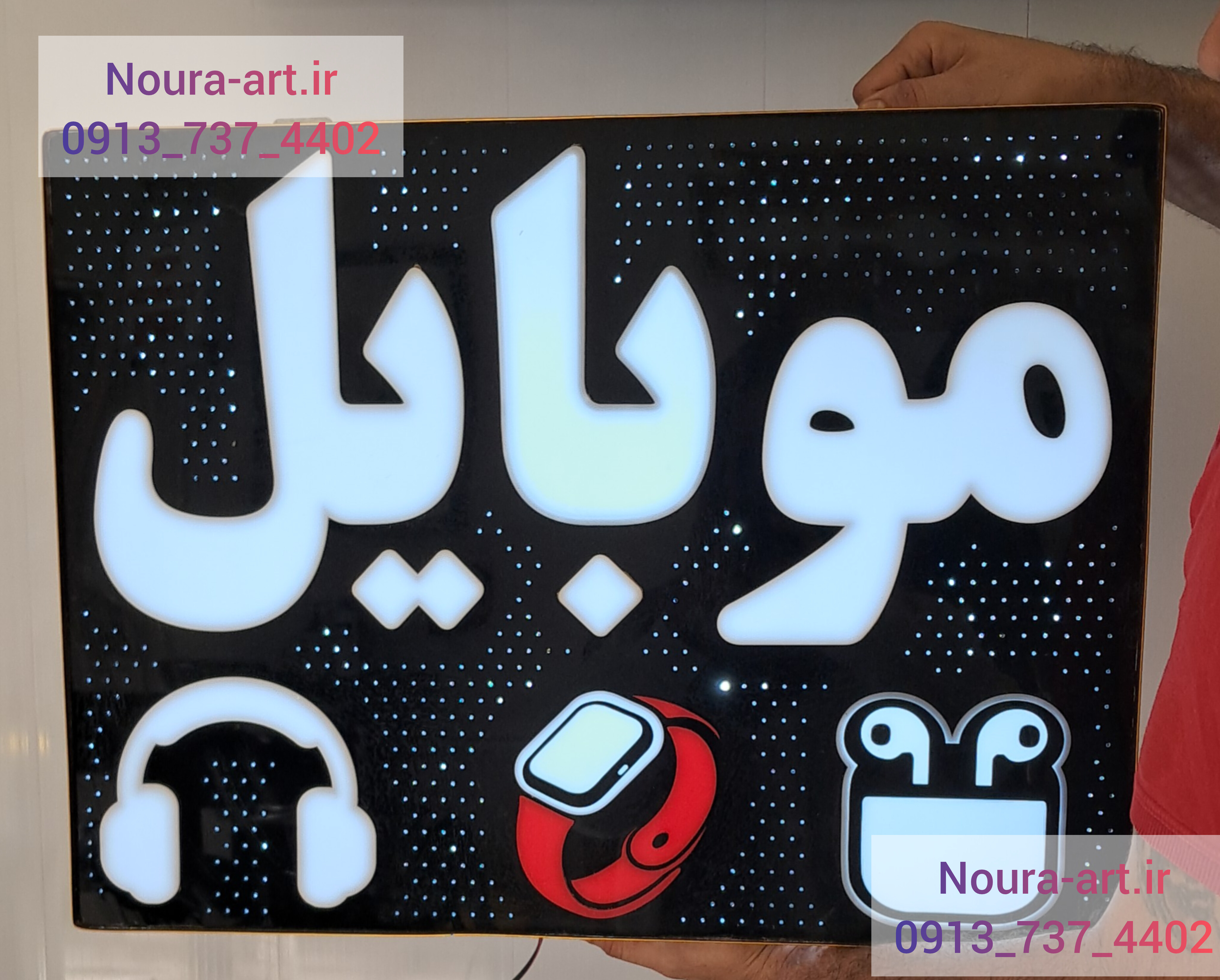 تابلو نئون طرح موبایل لایت باکس موبایل لوازم جانبی تعمیرات اقساطی
