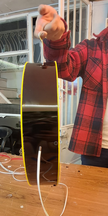 جنس تابلو از پلکسی زرد خارجی ساخته شده و با نور انبهای گرمش، هم روز جذاب دیده میشه هم شب...