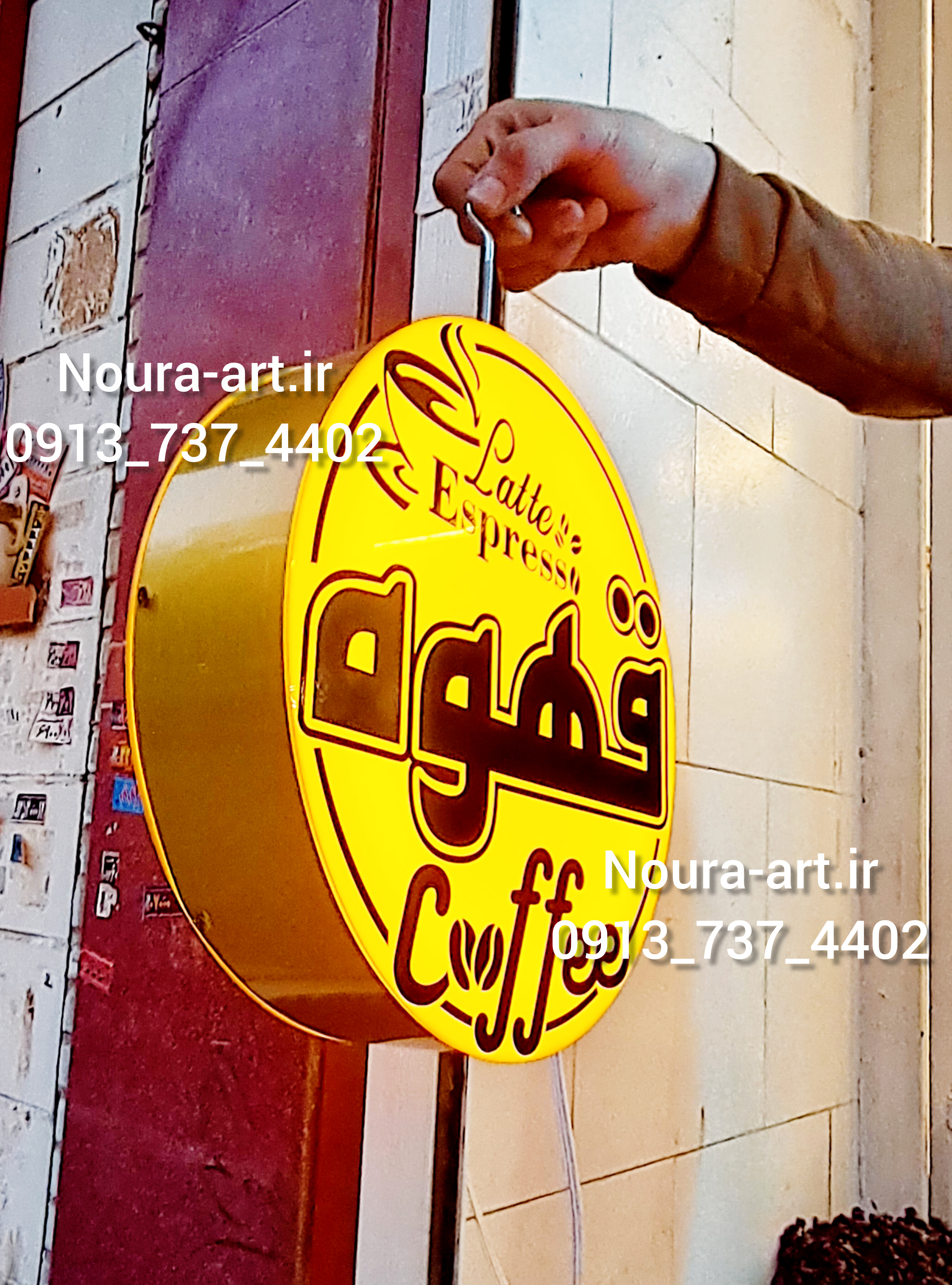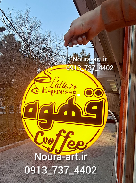 جنس تابلو از پلکسی زرد خارجی ساخته شده و با نور انبهای گرمش، هم روز جذاب دیده میشه هم شب...
