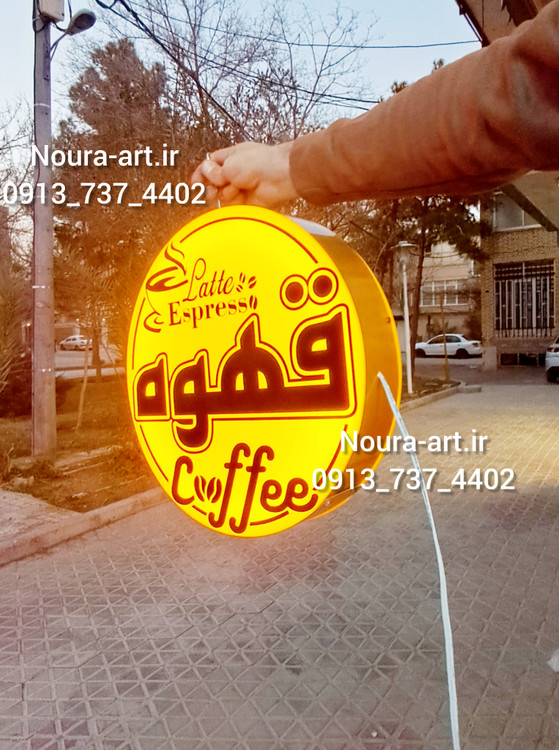 جنس تابلو از پلکسی زرد خارجی ساخته شده و با نور انبهای گرمش، هم روز جذاب دیده میشه هم شب...