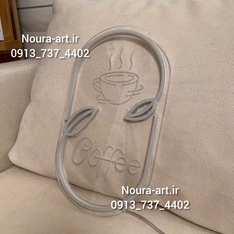 فقط دایره دور شکل نئون کار شده و متن و لوگو فنجان نئونی نیستند وقتی نئون حاشیه روشن میشه نور نئون داخل فنجان و متن تابلو انعکاس میکنه و متن با نور ملایم روشن و درخشان میشه