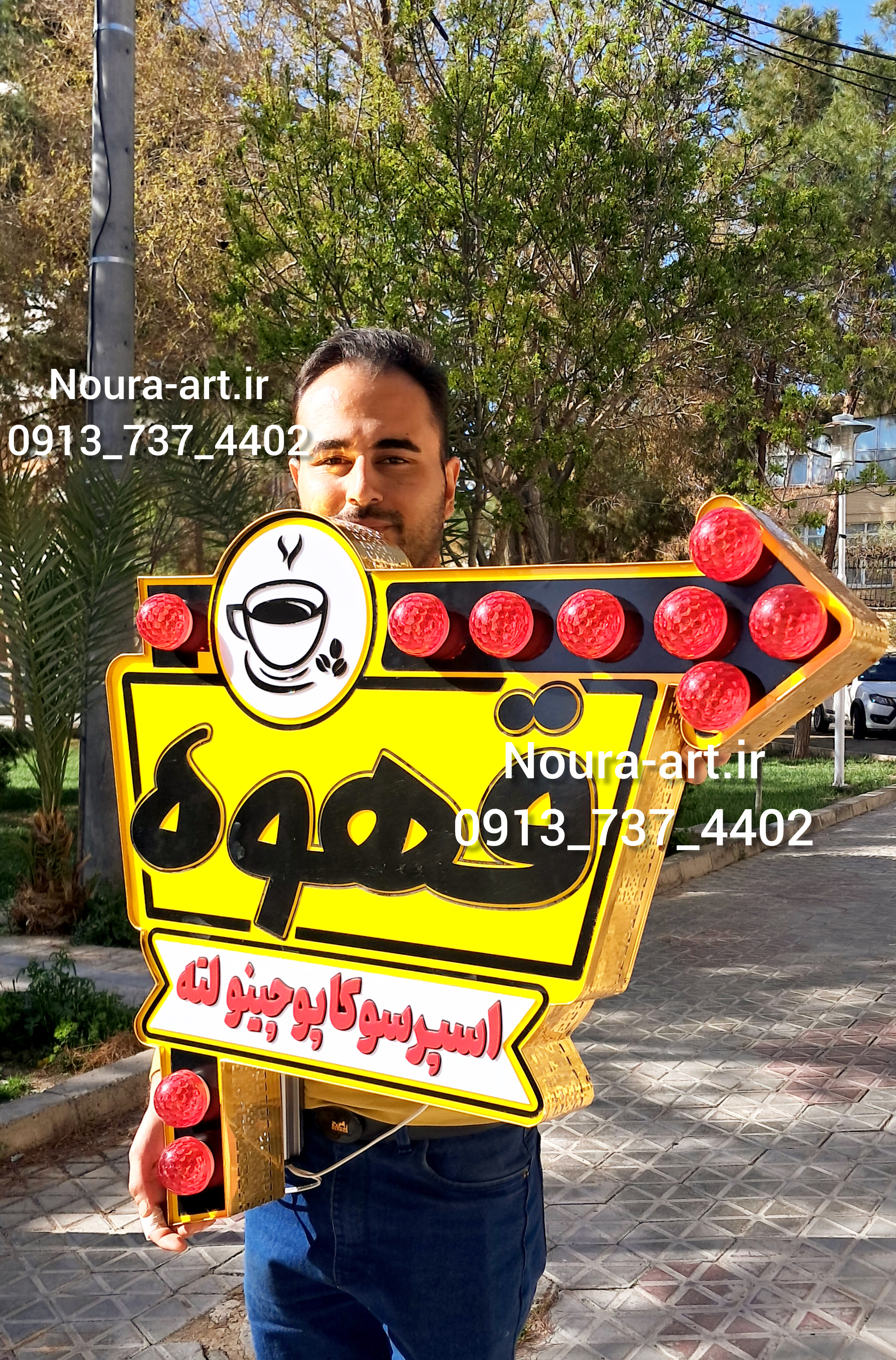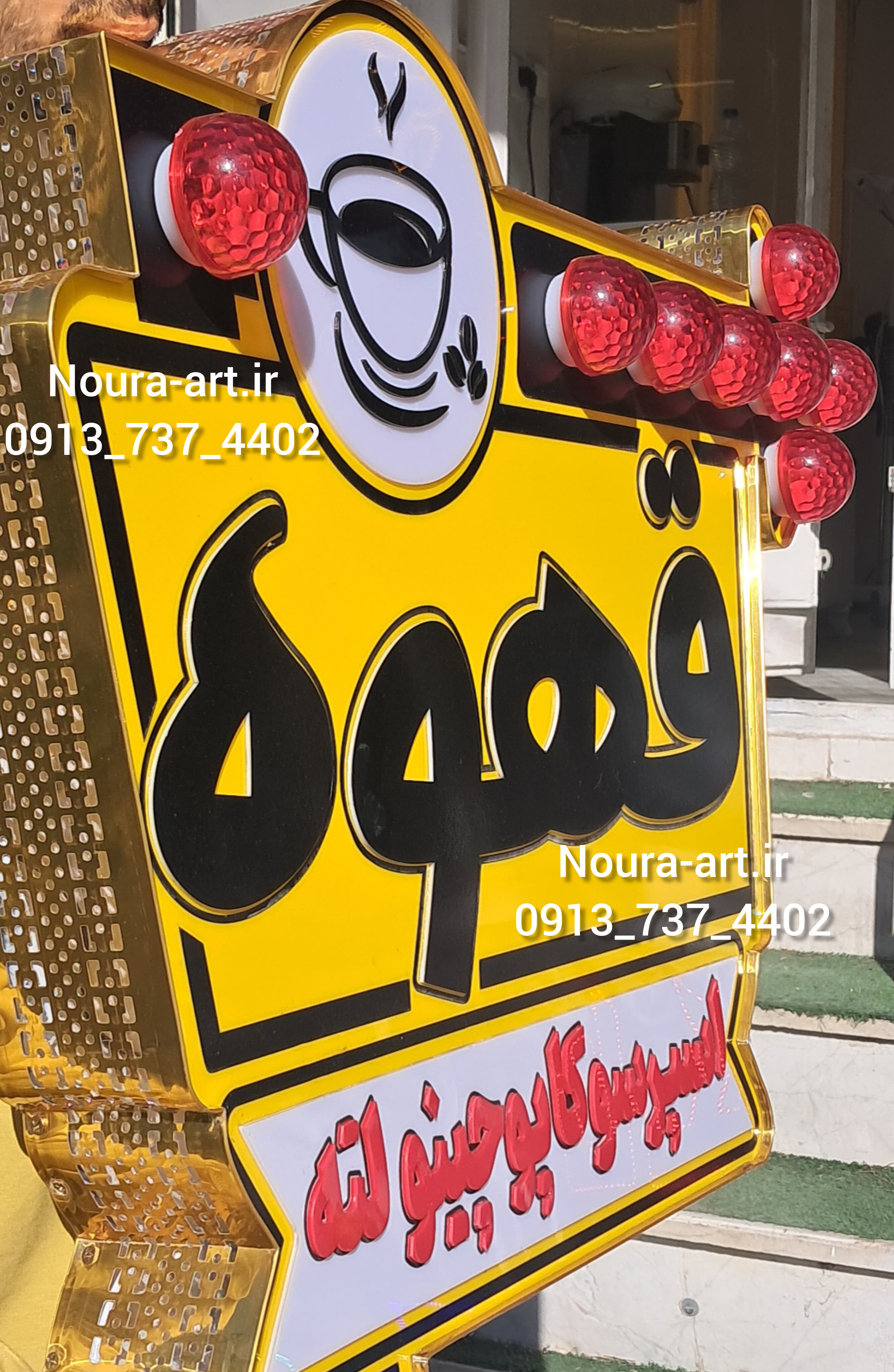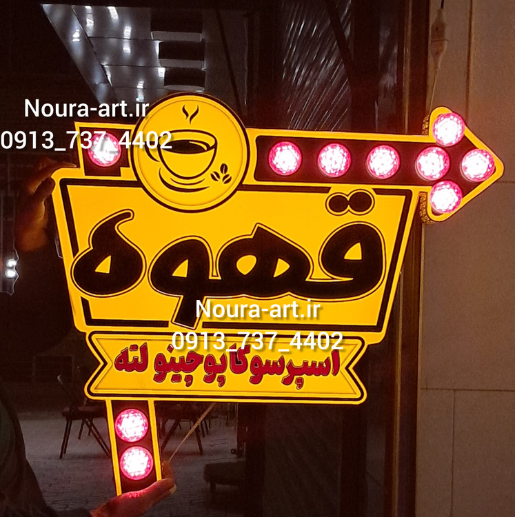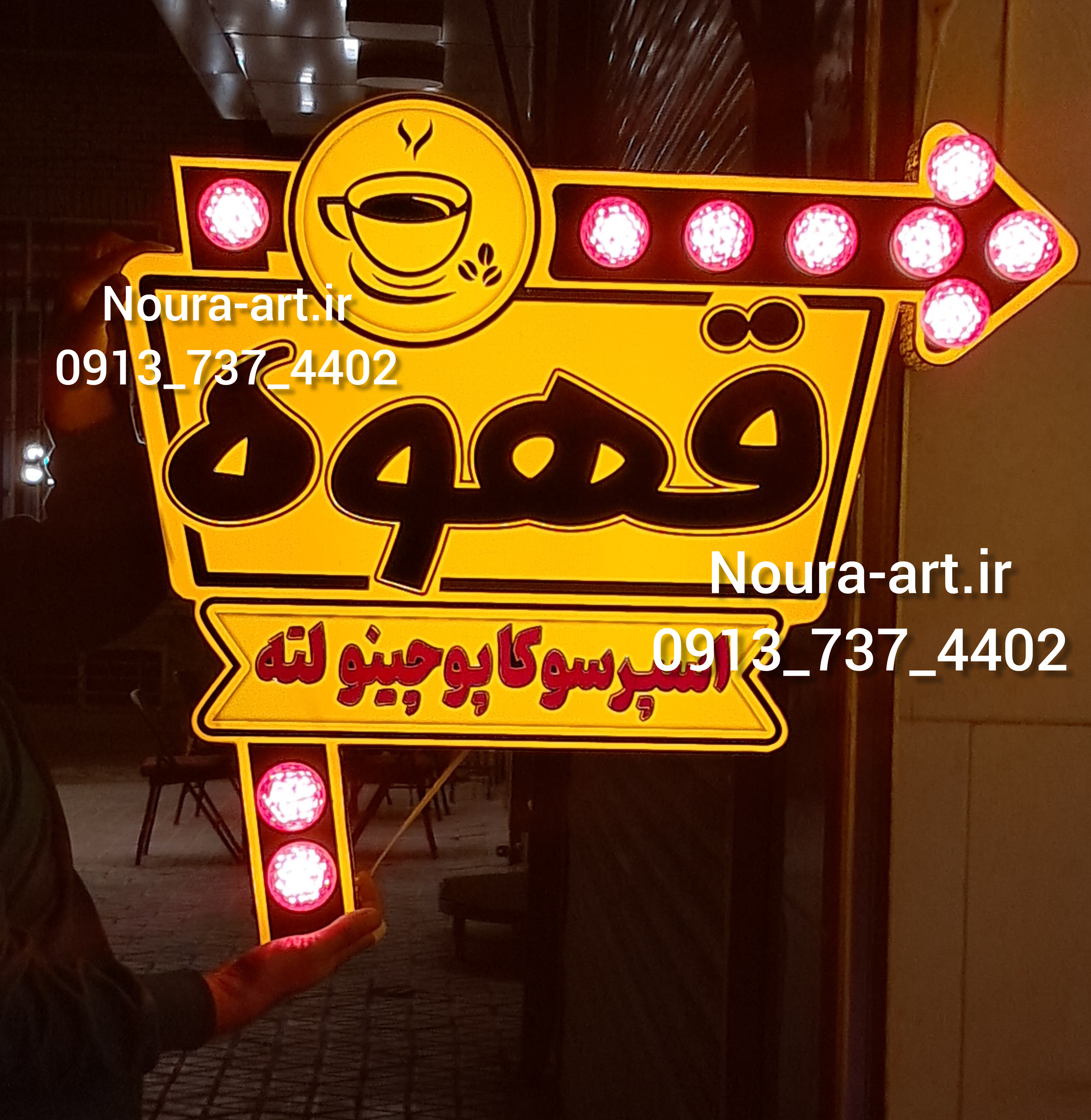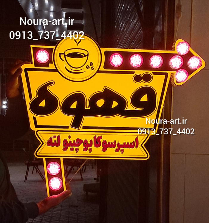 این تابلو (که به مدل اروپایی یا لاسوگاسی هم معروف است) نهتنها برای سردرب عالی است، بلکه برای فضای داخلی کافه، مخصوصاً با دکور چوبی و نور گرم، هارمونی بینظیری ایجاد میکند.