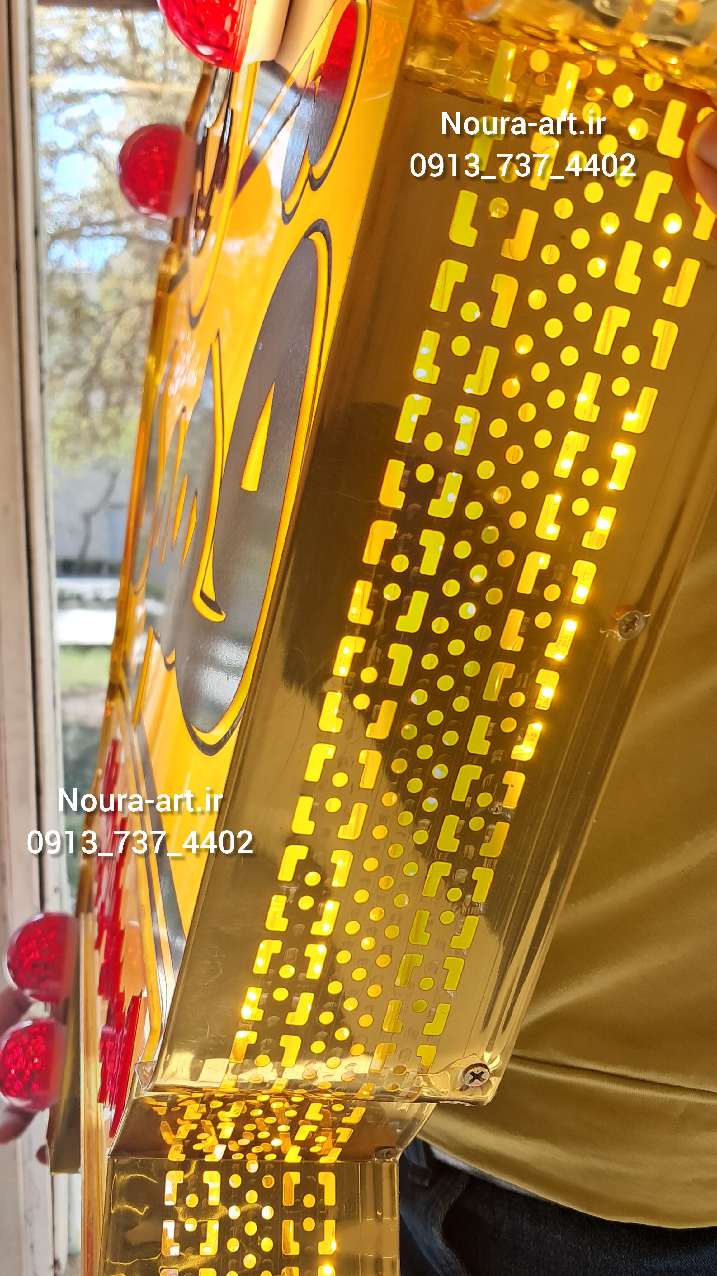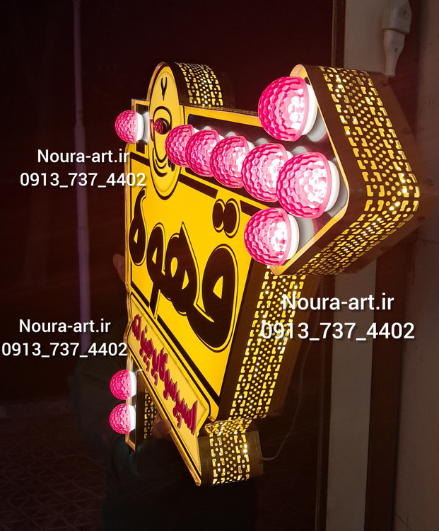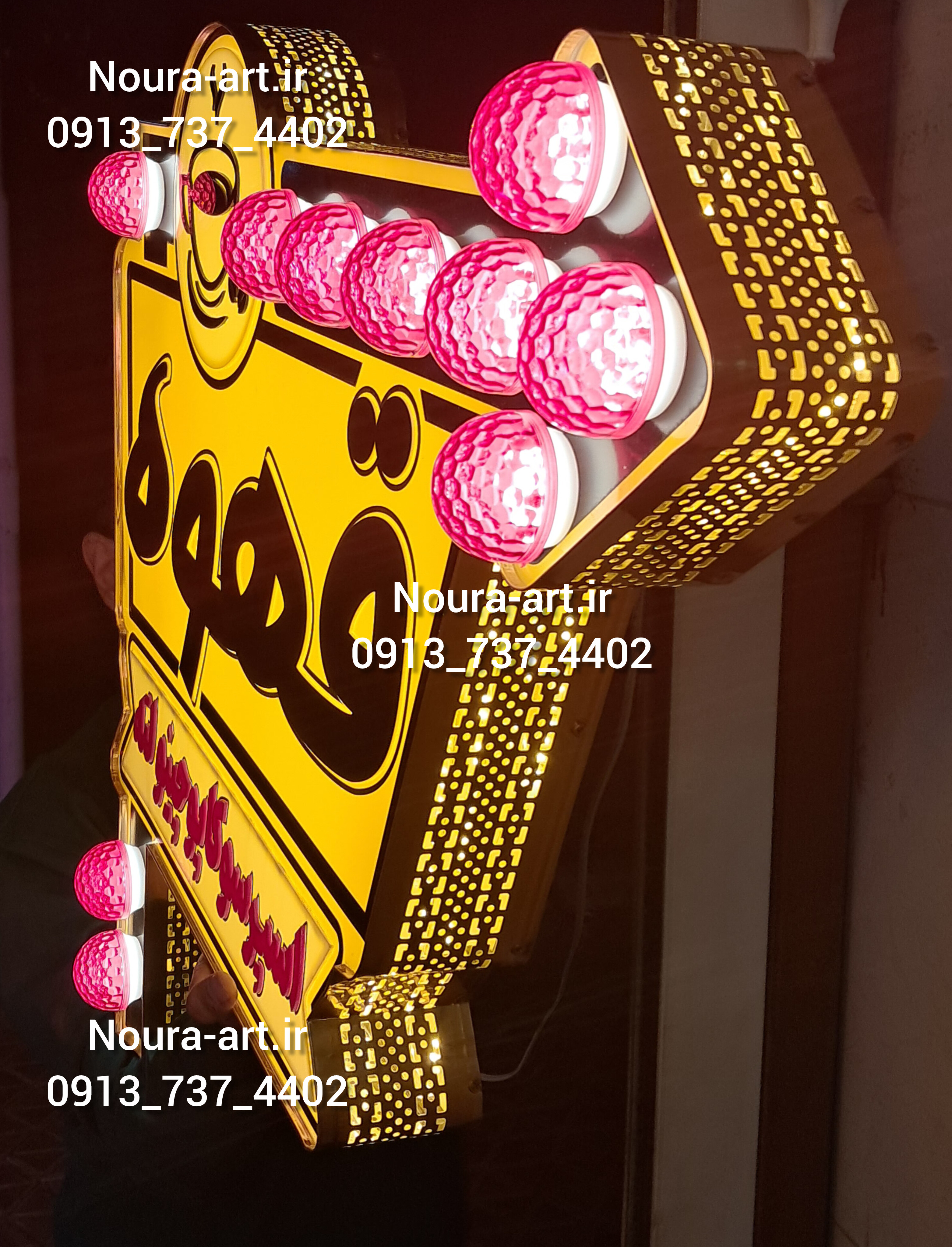 پلکسی زرد و سفید خارجی درجه یک بهمراه لامپ لاسوگاسی قرمز پر نور تابلو