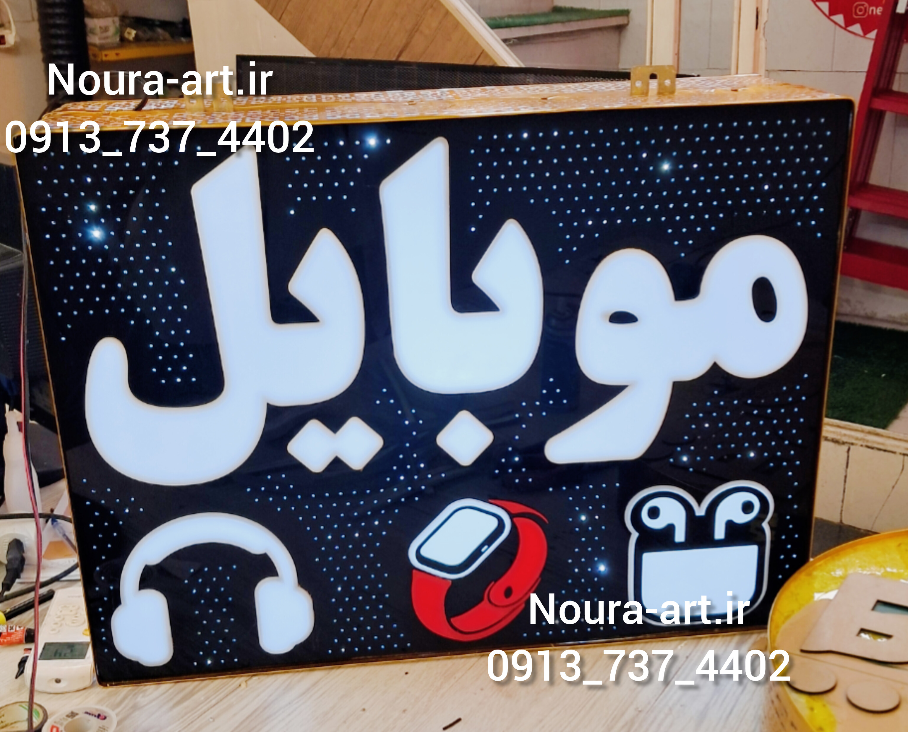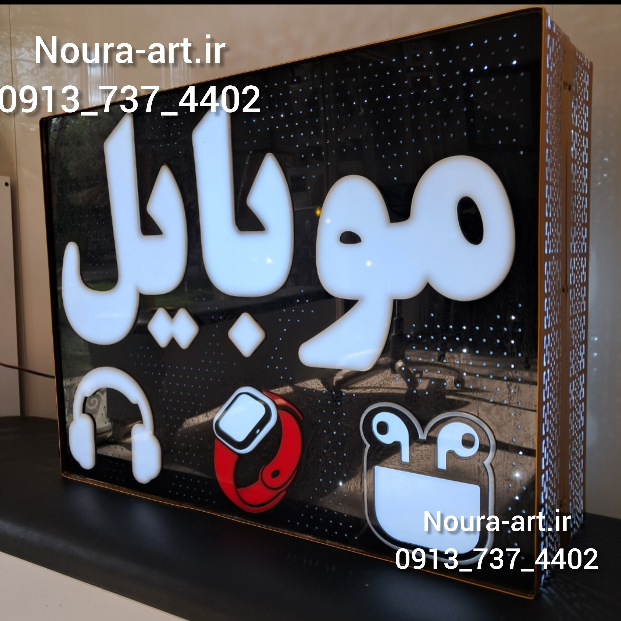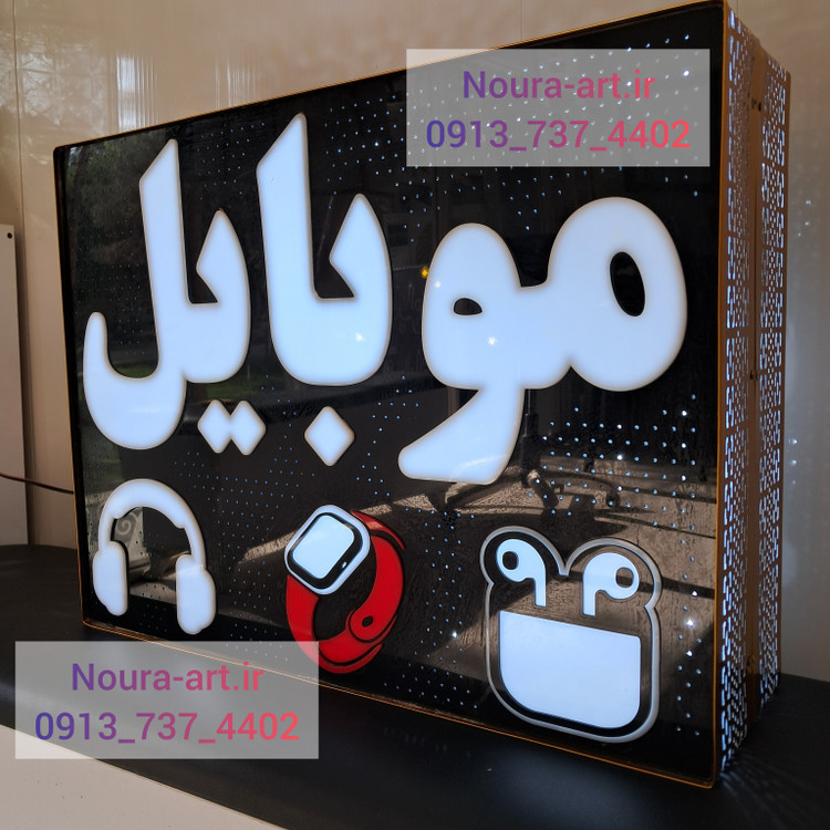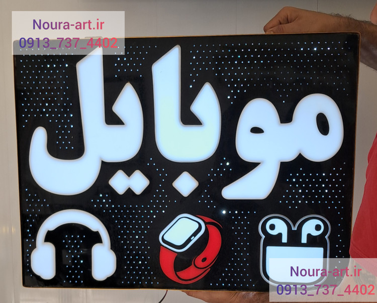 جنس تابلو: پلکسی مشکی خارجی بهمراه پانچ برای الماسی شدن نور