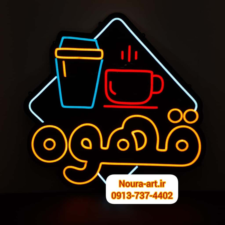 تابلو نئون طرح قهوه کاپ و فنجان کنترل دار اقساطی ترب پی