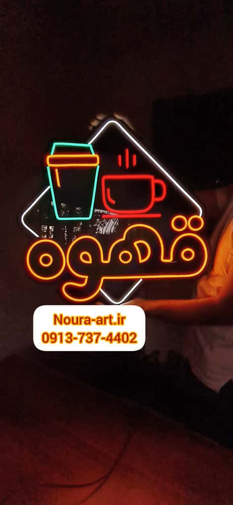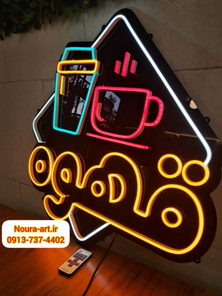 تابلو نئون طرح قهوه کاپ و فنجان کنترل دار اقساطی ترب پی