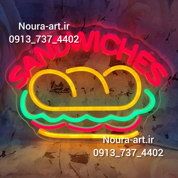تابلو نئون طرح ساندویچ همبرگر فست فود پیتزا اقساطی ترب پی اسنپ پی